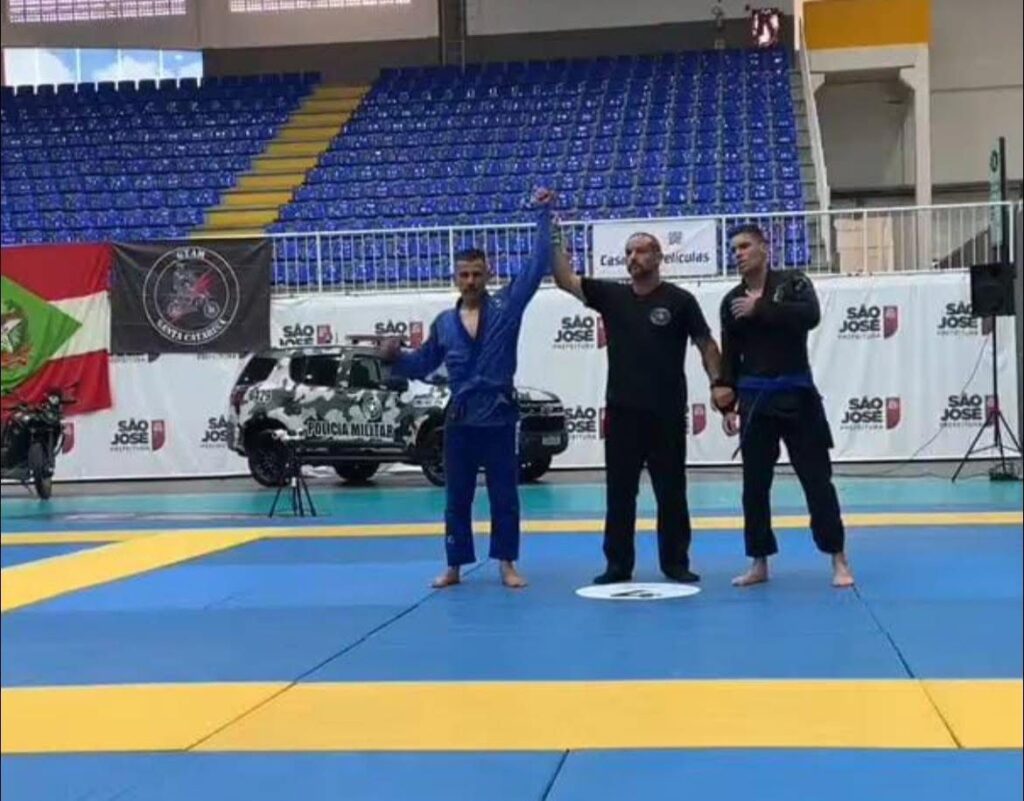No último sábado (21), o 30º Batalhão de Polícia Militar (30º BPM), com sede em Xanxerê, foi destaque na 1ª edição do Choque Jiu-Jitsu Combat, realizada no Centro Multiuso de São José, no município de São José/SC. O evento reuniu cerca de 300 atletas das forças de segurança pública e das Forças Armadas de todo o Brasil. Representando o batalhão com garra, técnica e determinação, o Soldado Marafon, integrante do Pelotão de Patrulhamento Tático (PPT) do 30º BPM, consagrou-se campeão em sua categoria — Adulto Faixa Azul, Peso Médio — conquistando o lugar mais alto do pódio e elevando o nome da unidade.