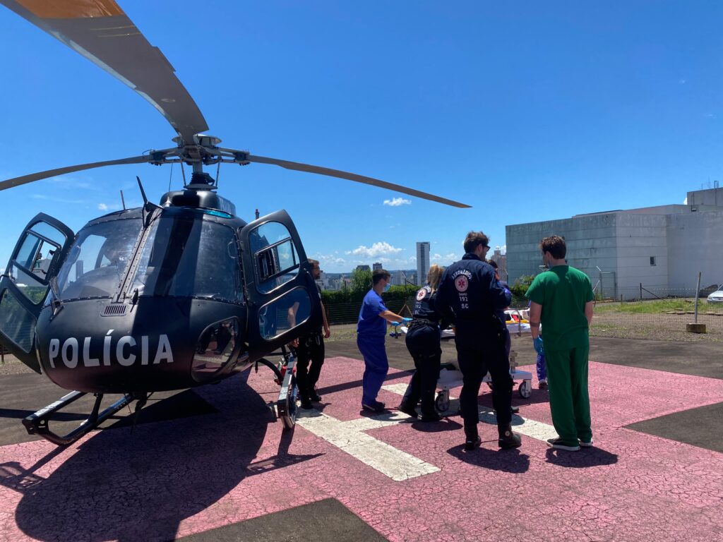 No início da tarde deste sábado (27), por volta das 12h30, a aeronave da Polícia Civil, tripulada por policiais do SAER-Fron e por profissionais do SAMU Aeromédico, foi acionada para atendimento a um acidente de trânsito na SC-283, em Chapecó, nas proximidades da ponte do Rio Irani.