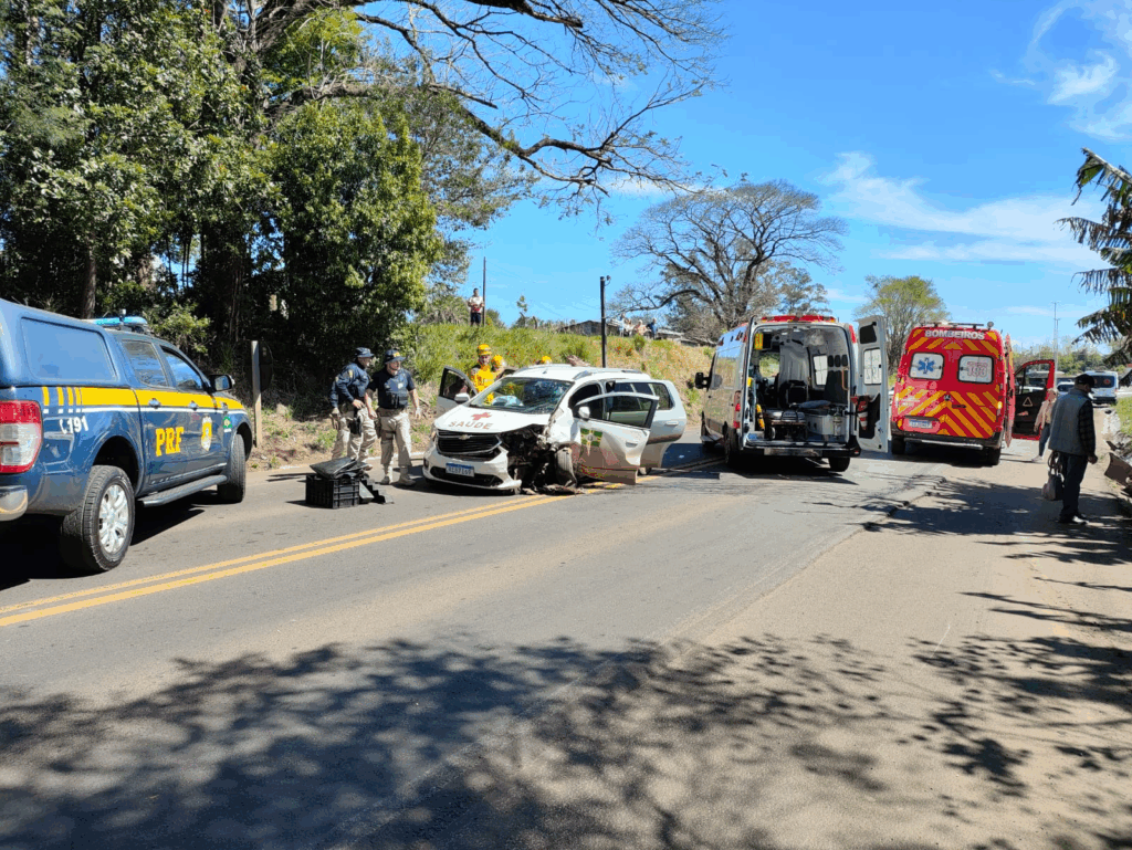 Colisão ocorreu na BR-282 e mobilizou equipes de resgate do Corpo de Bombeiros e SAMU