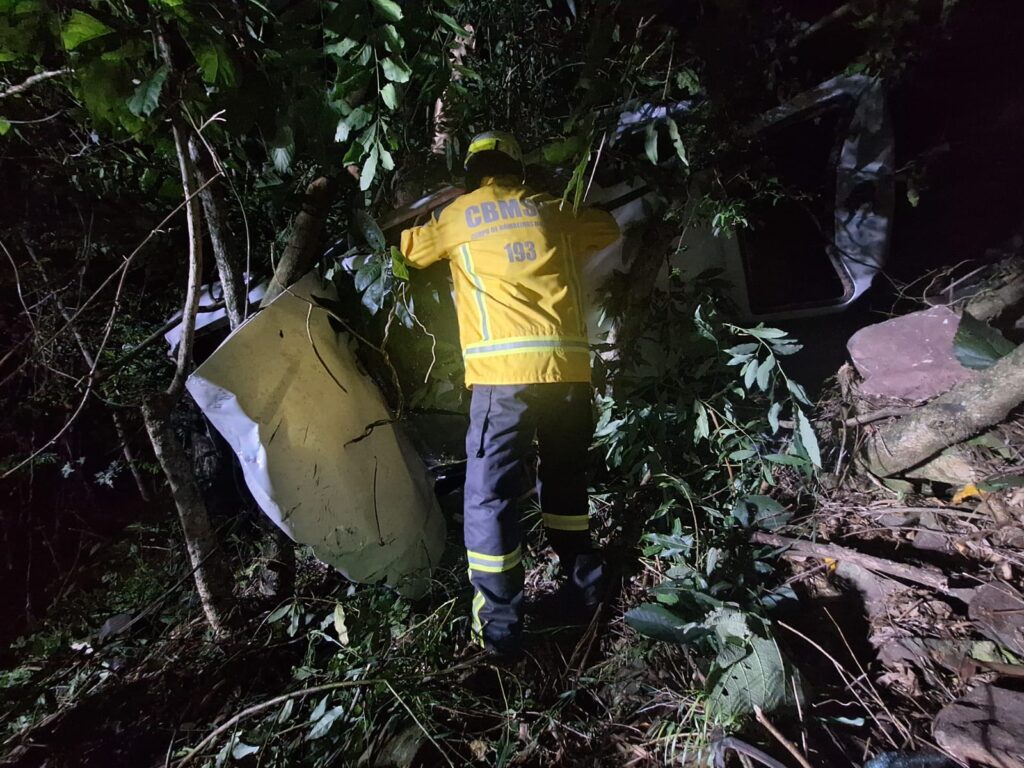 Ocorrência foi registrada na Linha Santo Antônio, onde um carro caiu cerca de 40 metros em área de difícil acesso