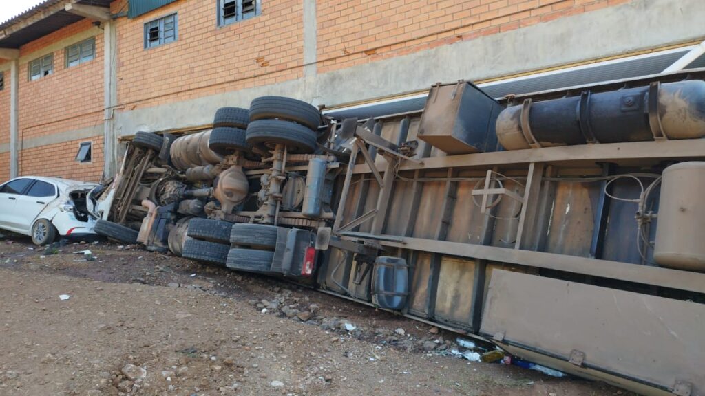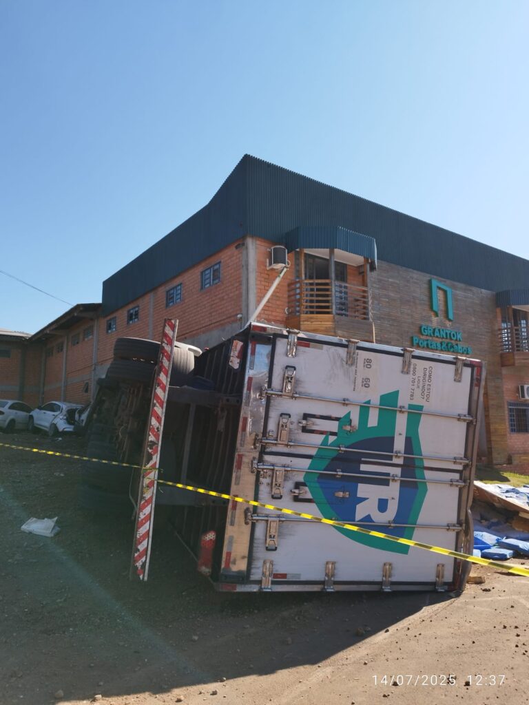 Na tarde desta segunda-feira (14), um caminhão desgovernado tombou e colidiu contra uma empresa de portas e janelas na Rua 7 de Setembro, no centro de Vargeão, Oeste catarinense. O acidente ocorreu por volta das 12h e deixou o motorista do veículo e funcionários do local com ferimentos leves.