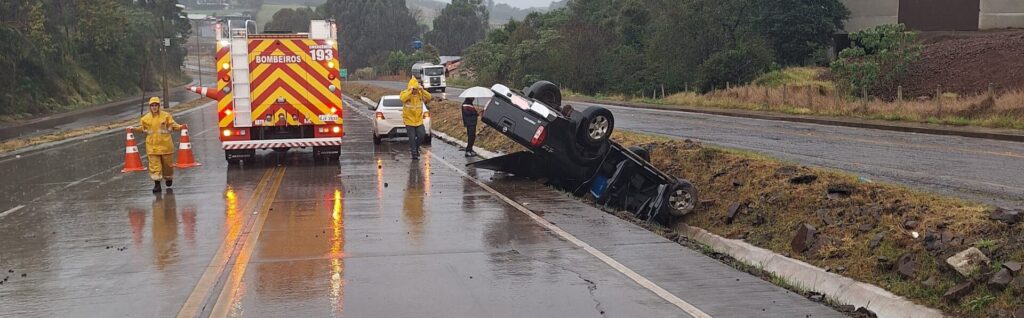 Três pessoas ficaram envolvidas em um capotamento registrado por volta das 09h deste domingo (29) na BR-163, em São José do Cedro (SC). O acidente envolveu uma caminhonete Nissan Frontier com placas de Anchieta (SC).