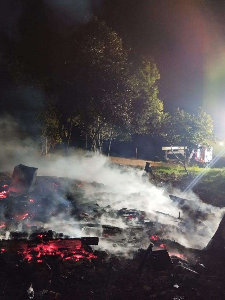 Na noite desta quinta-feira (1), um incêndio destruiu completamente uma edificação unifamiliar localizada na Linha Águinhas Frias, interior do município de Águas de Chapecó, no Oeste de Santa Catarina. O chamado de emergência foi registrado às 22h42min e rapidamente a equipe do Corpo de Bombeiros de São Carlos (SC), deslocou-se até o local.