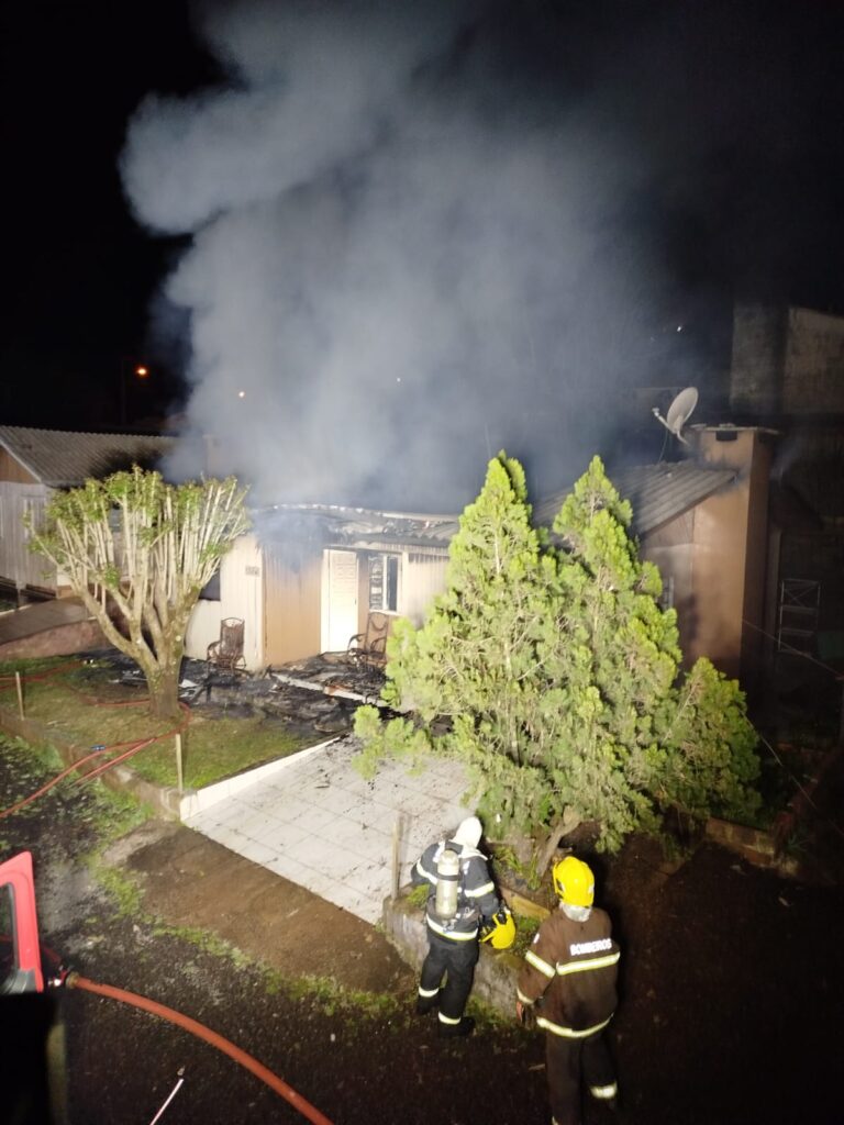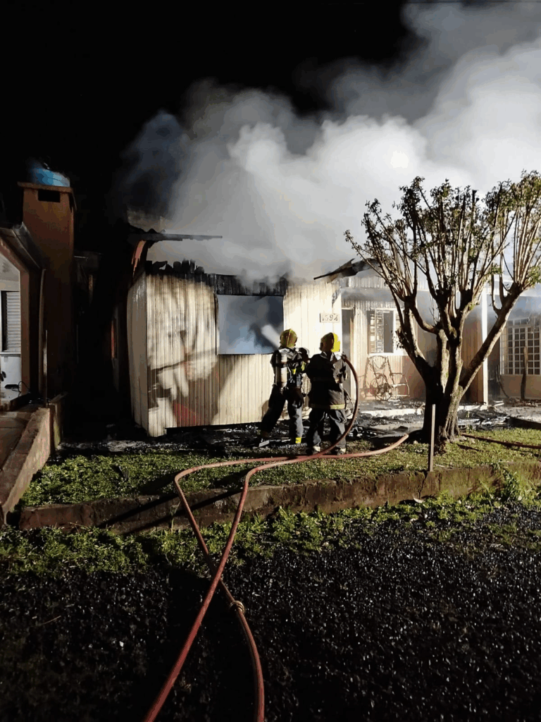 Na madrugada de sábado (17), por volta das 3h, o Corpo de Bombeiros atendeu a um incêndio em uma residência de madeira localizada na Avenida Presidente Kennedy, no Centro de Maravilha, Oeste de Santa Catarina. O imóvel, de aproximadamente 70 m², foi totalmente destruído pelas chamas.