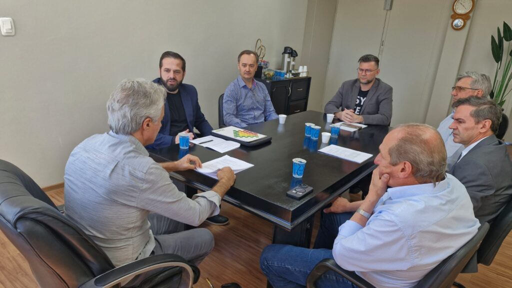 O prefeito Oscar Martarello recebeu nesta quinta-feira, em seu gabinete, o presidente do Centro de Inovação de Xanxerê, Fábio Ambrósio, o vice-presidente do Centro de Inovação de Xanxerê, Romeu Meneguzzi, o vice-reitor da Unoesc Xanxerê, Genésio Teo, o presidente da ACIX, Elisio Bonan, o presidente do Conselho Municipal de Ciência, Tecnologia e Inovação de Xanxerê, Osmarildo Paviani, e o primeiro secretário do Centro de Inovação de Xanxerê, Christian Garghetti.