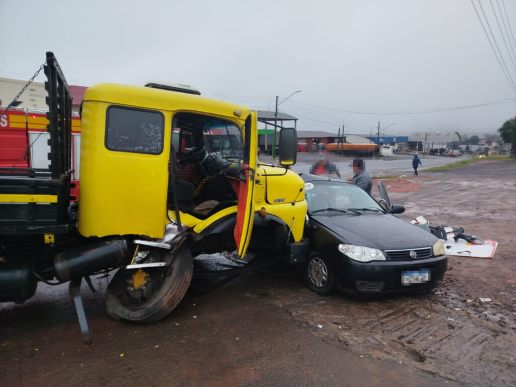 Na manhã desta sexta-feira (8), por volta das 8h, uma mulher ficou ferida após uma colisão entre um automóvel e um caminhão no cruzamento da rua Nossa Senhora das Graças com a SC-155, no Centro de Abelardo Luz, Oeste de Santa Catarina.