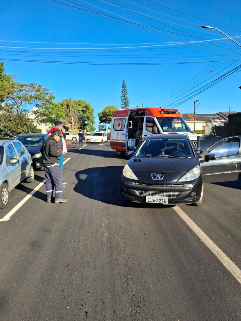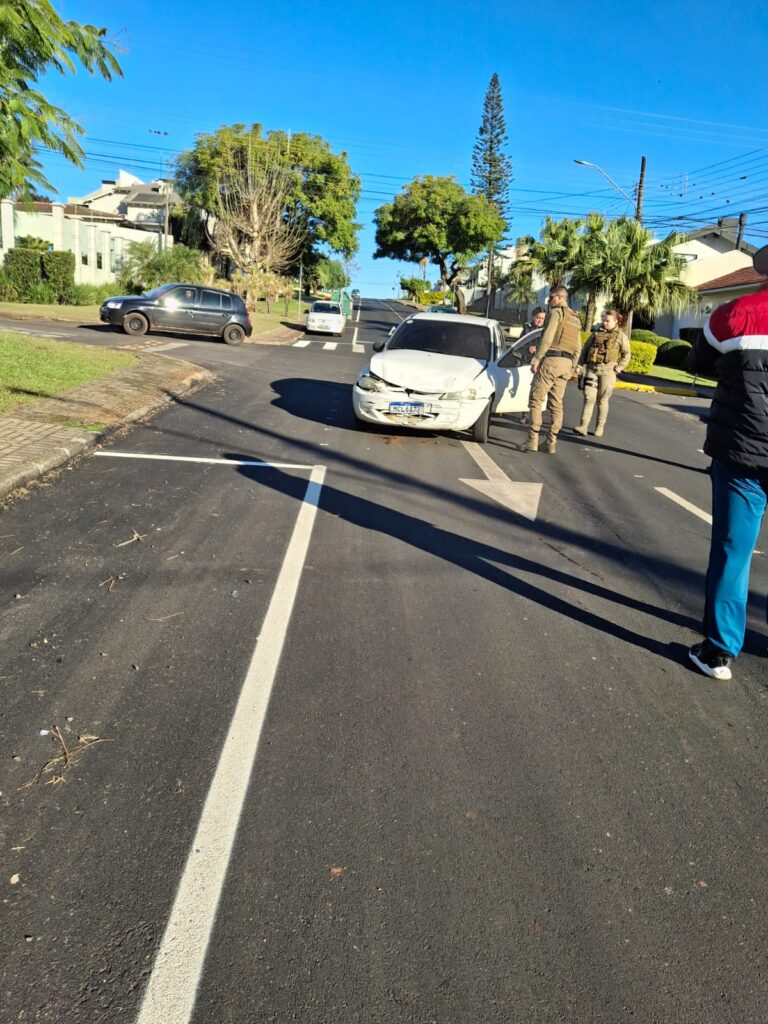 Uma mulher de 28 anos ficou ferida após uma colisão envolvendo dois veículos na tarde desta terça-feira (1), no bairro Maria Goretti, em Chapecó, no Oeste de Santa Catarina. O acidente ocorreu no cruzamento da Rua 14 de Agosto com a Floriano Peixoto.