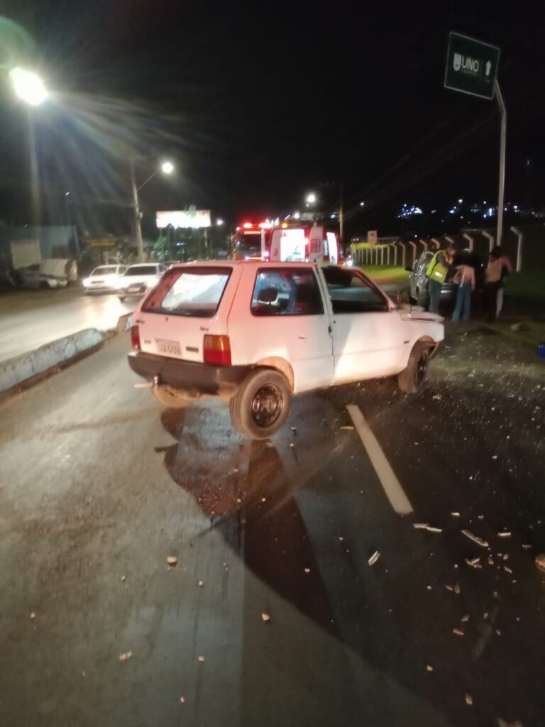 Acidente envolveu dois veículos na Av. Senador Atílio Fontana na noite de sábado (3)