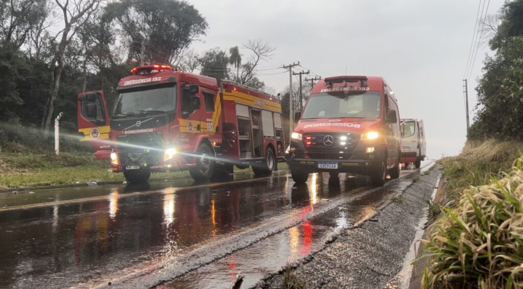 No Palio, quatro pessoas estavam no veículo. O condutor apresentava dores na coluna, a caroneira foi socorrida em estado grave e uma idosa também se queixava de dores. Uma criança, que estava na cadeirinha, não sofreu ferimentos.