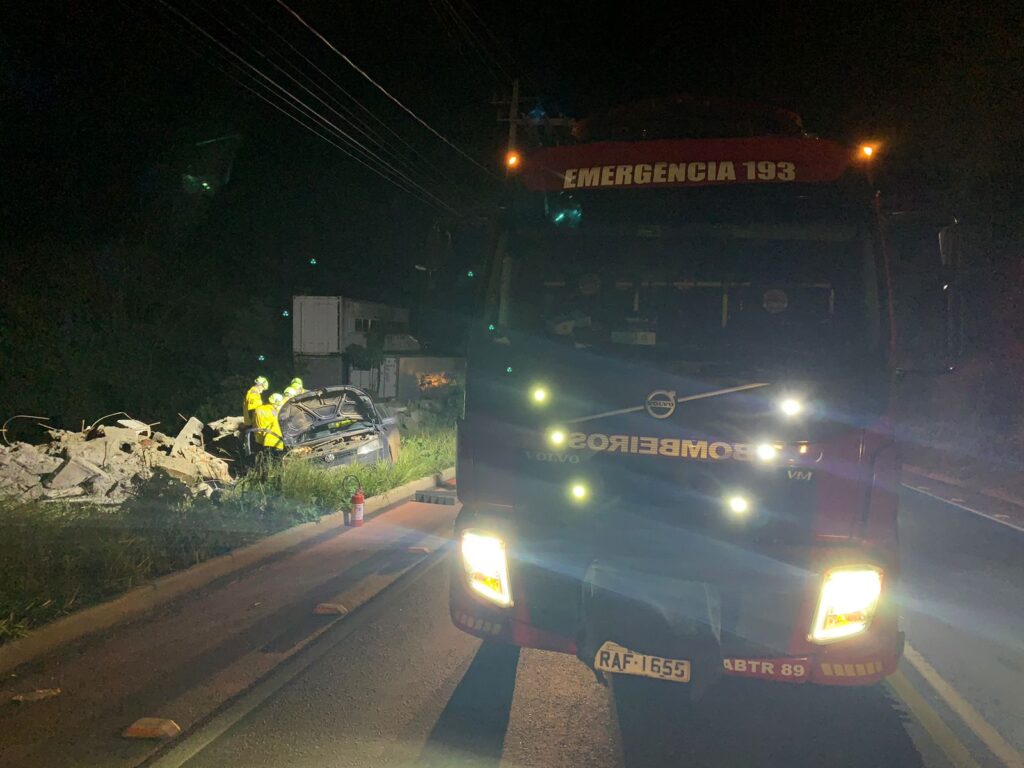 O veículo, um VW Gol com apenas o condutor a bordo, saiu da pista, parando fora da via. Com o impacto, o motorista foi projetado para o banco traseiro do automóvel.