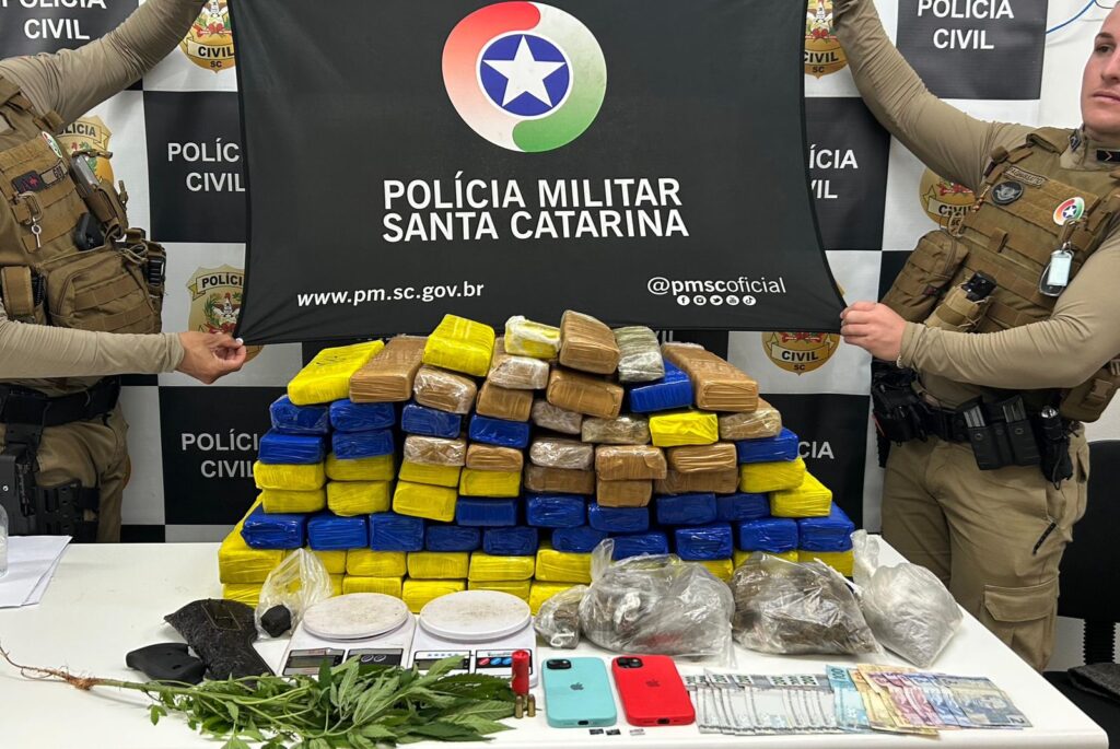 A Polícia Militar de Santa Catarina (PMSC), por meio do 30º Batalhão de Polícia Militar de Fronteira, (BPM/Fron) apreendeu aproximadamente 58 quilos de maconha, além de haxixe, munições e dinheiro, durante o atendimento de uma ocorrência registrada no início da tarde desta sexta-feira (30), no bairro Vila Sésamo, em Xanxerê.