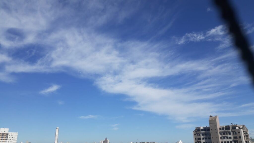O sábado será o dia mais crítico do período. O calor permanece e as instabilidades ganham força, especialmente na metade leste de Santa Catarina. Há previsão de temporais mais intensos entre a tarde e a noite, com chuva forte, rajadas de vento, raios e granizo.