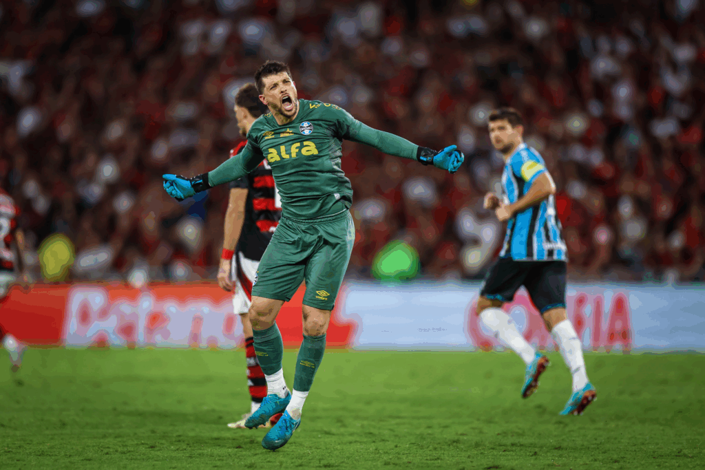 Em jogo disputado no Maracanã, no Rio de Janeiro (RJ), na tarde deste domingo (31), o Grêmio enfrentou o líder do Campeonato Brasileiro, Flamengo, e conquistou um ponto importante fora de casa, empatando por 1 a 1. O gol da equipe gaúcha foi marcado pelo goleiro Tiago Volpi, de pênalti, enquanto Arrascaeta abriu o placar para os cariocas. A partida contou com quase 70 mil torcedores presentes, representando um dos maiores públicos do futebol brasileiro neste ano.