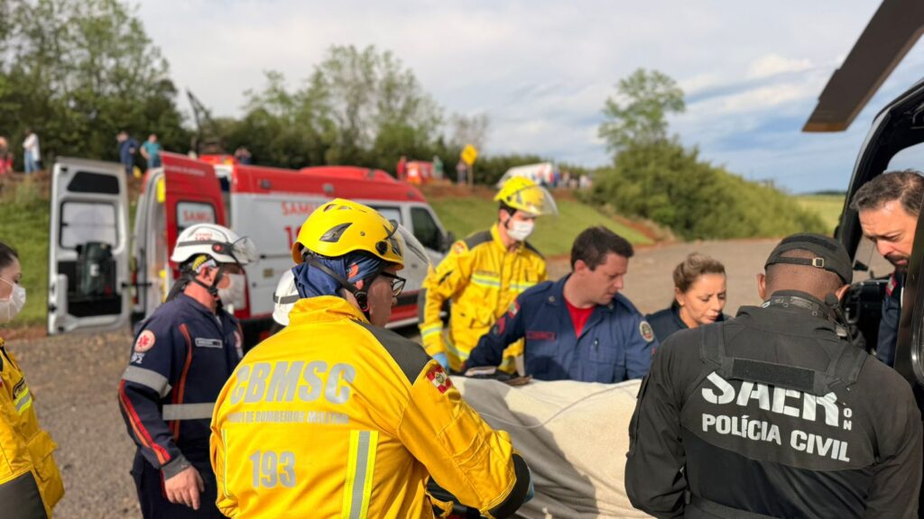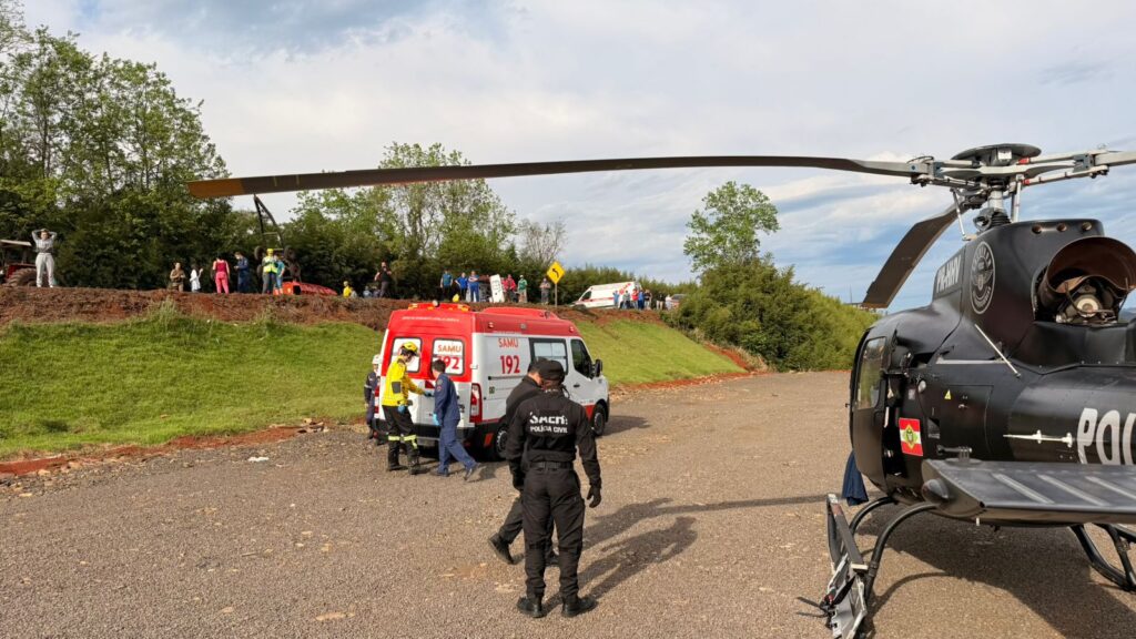 O passageiro do trator, um homem de 32 anos, sofreu trauma abdominal com grave hemorragia, além de múltiplas fraturas na perna e no pé esquerdo. Ele foi estabilizado pela equipe do SAMU/Aeromédico e transportado de helicóptero ao Hospital de São Miguel do Oeste.
