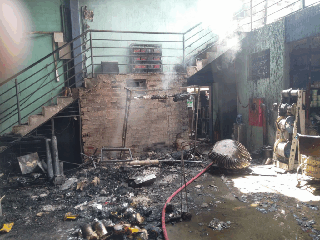 Um incêndio registrado por volta das 13h de sábado (7), atingiu uma empresa de materiais de construção localizada no centro de Coronel Freitas (SC). A área afetada chegou a aproximadamente 1.000 m².