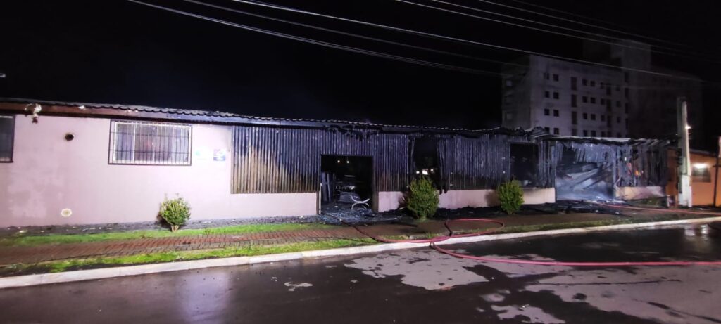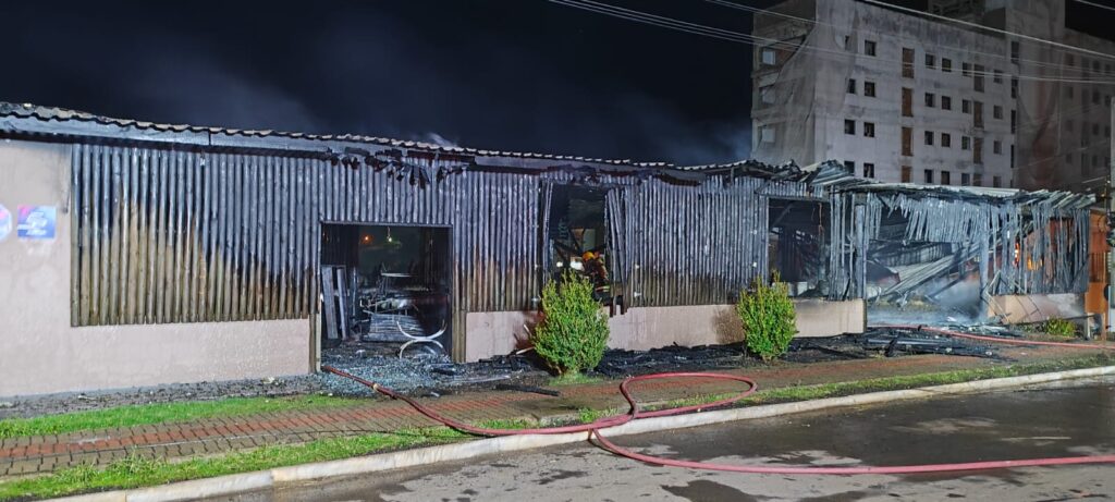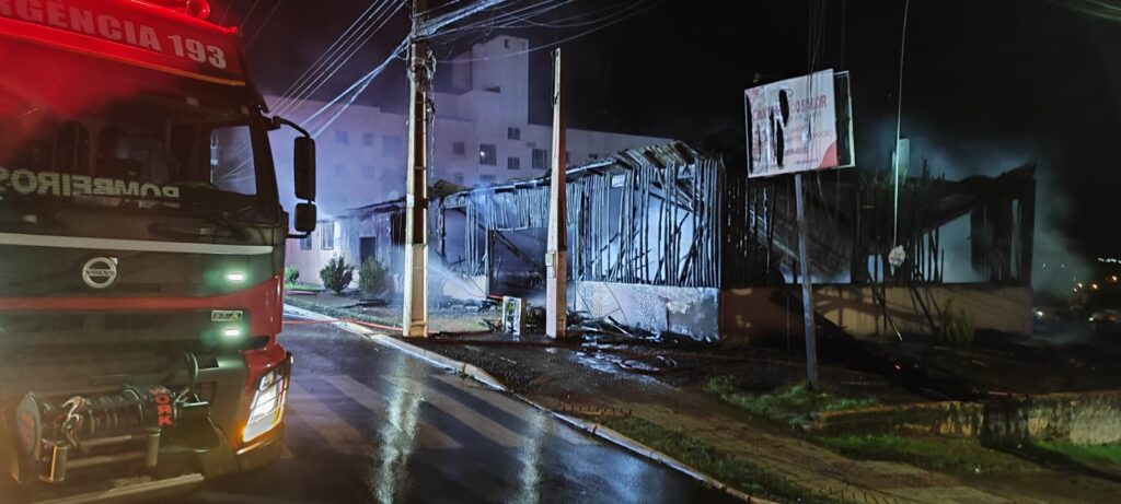No final da noite desta segunda-feira (23), um incêndio de grandes proporções acabou destruindo uma pizzaria que fica localizada na Rua Garças, no bairro Efapi, em Chapecó, Oeste de Santa Catarina.