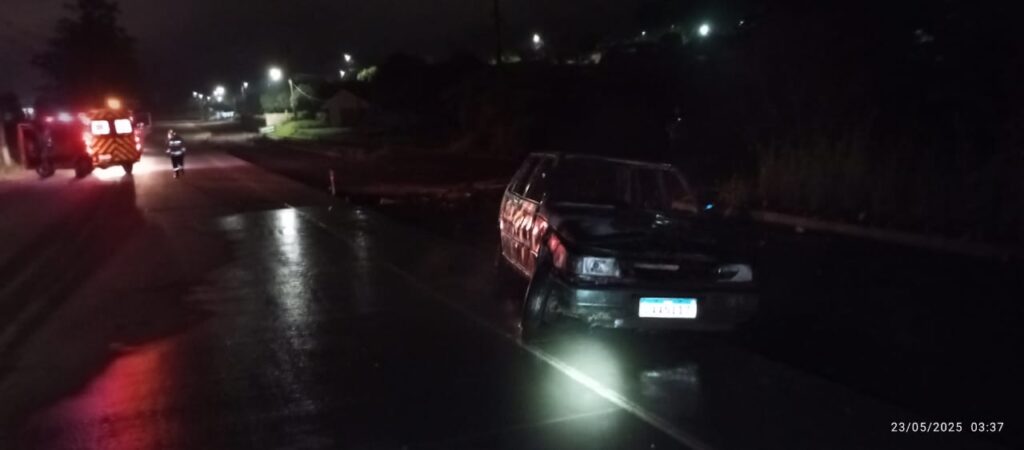 Um incêndio em um automóvel foi atendido pelo Corpo de Bombeiros na madrugada desta sexta-feira (23), por volta das 3h, às margens da SC-160, no distrito de Machado, interior de Pinhalzinho, no Oeste de Santa Catarina
