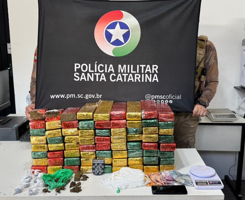 Uma ação da Polícia Militar de Santa Catarina, por meio do 2º Batalhão de Polícia Militar de Fronteira (2º BPM/Fron), resultou na apreensão de uma grande quantidade de entorpecentes e na prisão de dois homens, ambos de 25 anos, na terça-feira (10), no bairro Pinheirinho, em Chapecó.
