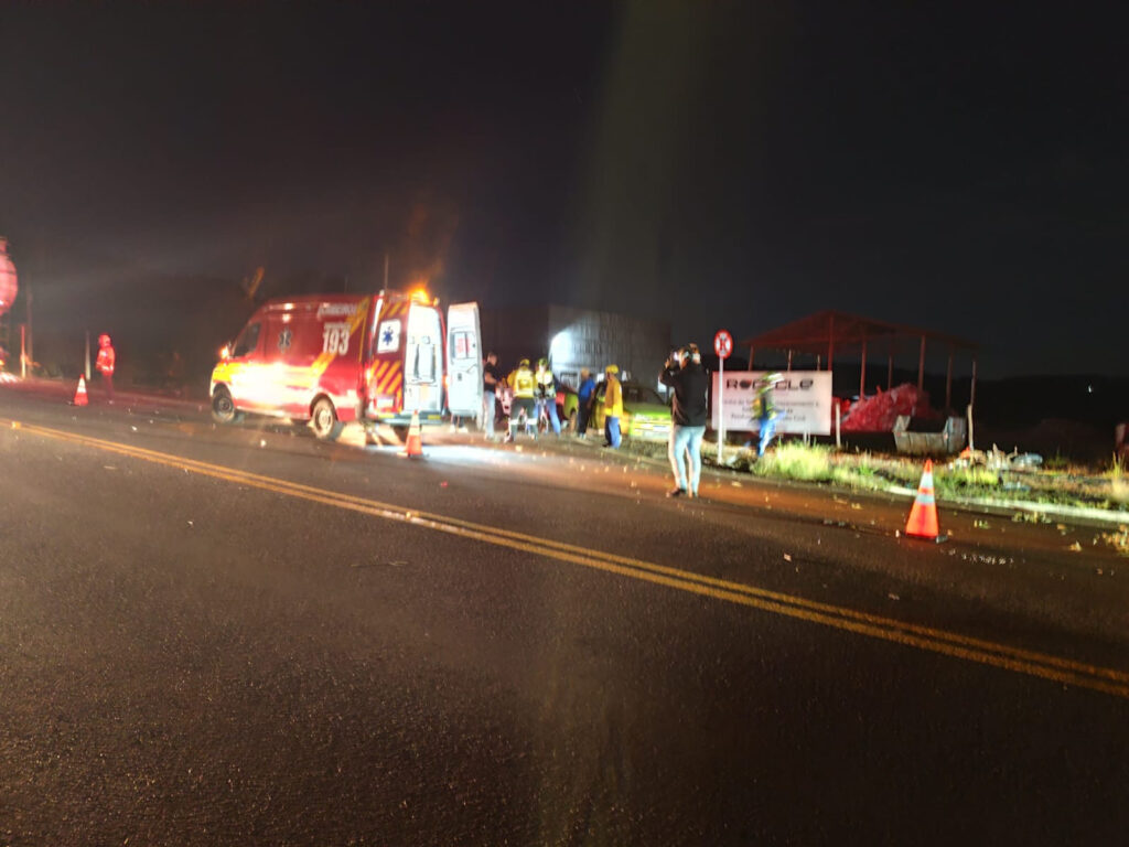 A colisão entre carro e moto ocorreu na SC-283, na saída para o município de Seara (SC)