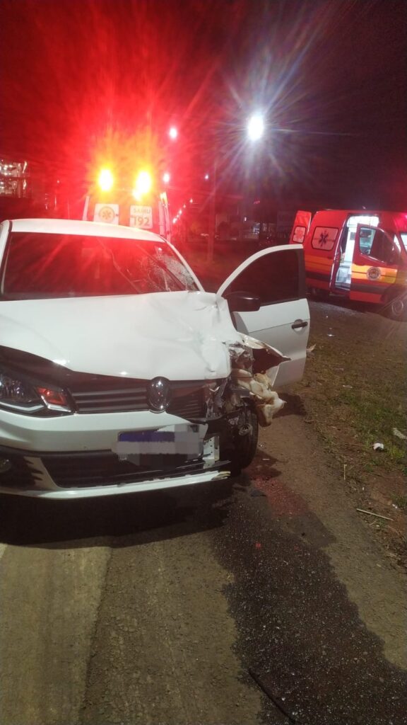 Um motociclista ficou ferido após uma colisão com um carro, na noite desta segunda-feira (11), no Acesso Sul, próximo à Unopar, em São Lourenço do Oeste, Oeste de Santa Catarina. O acidente foi registrado por volta das 18h.
