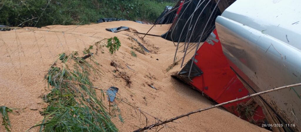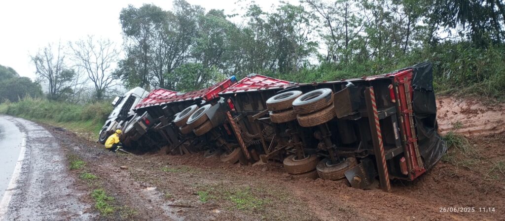 A ocorrência envolveu uma carreta graneleira carregada com trigo, que seguia no sentido Pinhalzinho (SC) a Maravilha (SC). O veículo saiu da pista e capotou, ficando lateralizado fora da rodovia. No momento da chegada das equipes de socorro, o condutor, um homem de 59 anos, já estava fora da cabine, consciente e orientado. Ele apresentava contusões leves nos membros superiores e inferiores.