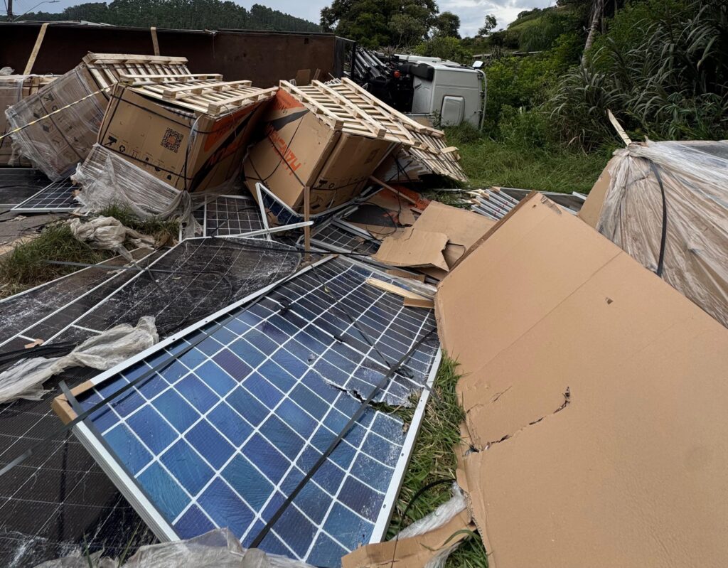 Ao chegar ao local, os socorristas do Corpo de Bombeiros de Seara encontraram um caminhão que transportava placas solares lateralizado sobre a via. O condutor estava preso entre a cabine do veículo e o solo, sem sinais vitais. Para possibilitar a retirada da vítima, a guarnição utilizou equipamento hidráulico, ampliando o espaço entre a cabine e o chão.