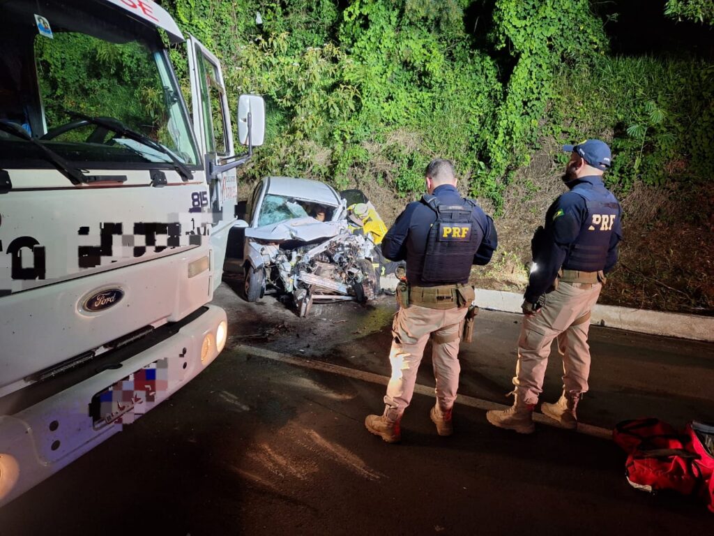 Poucas horas após um grave acidente que resultou em duas mortes, uma nova colisão foi registrada na BR-282, km 510, no interior de Xanxerê (SC). O fato ocorreu na madrugada desta segunda-feira (3), por volta das 00h, quando um Hyundai HB-20 atingiu um caminhão-guincho que fazia a retirada de um dos veículos envolvidos no acidente anterior.
