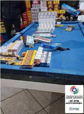 A Polícia Militar registrou na noite de sexta-feira (26), por volta das 23h, uma ocorrência de contrabando, descaminho e porte de arma branca ou simulacro na Rua Ademar José Rauber, bairro Baia Alta, em Ponte Serrada, no Oeste de Santa Catarina.