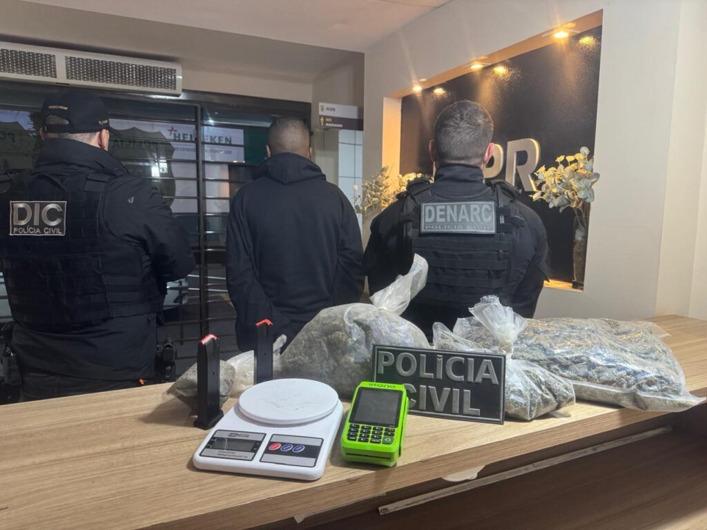 Durante o cumprimento dos mandados, três pessoas foram presas em flagrante. Duas delas estavam em Campo Mourão (PR), onde houve apreensão de capulho (forma de apresentação da droga), e a terceira em Itajaí (SC), com cerca de 5 kg de maconha.
