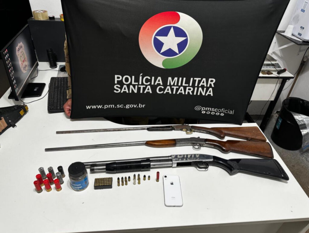 A Polícia Militar de Santa Catarina (PMSC), por meio do 2º Batalhão de Polícia Militar de Fronteira (2º BPM/Fron), apreendeu na tarde de segunda-feira (25) armas e diversas munições na Linha Colônia Cella, interior de Chapecó, no Oeste de Santa Catarina.