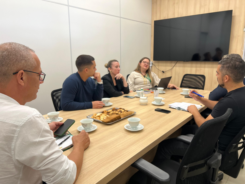 Os vereadores Ascendino Batista, Instrutor Lucas e Mateus Batista, da Comissão Especial Sobre Pessoas em Situação de Rua, estiveram reunidos com o secretário da Família e Proteção Social, Luciano Hüning, e com a diretora de Acolhimento e Apoio a Dependentes, Paula Gai.