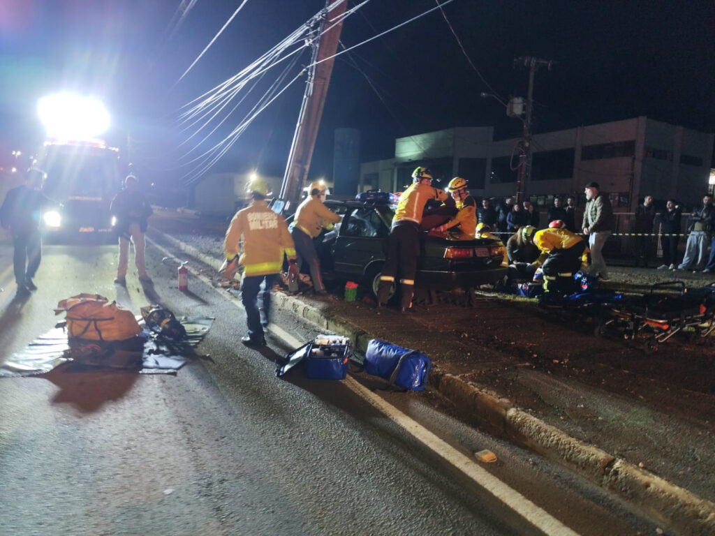 No final da noite desta quinta-feira (24), um acidente de trânsito foi registrado na marginal da BR-480, no sentido Trevo–Centro, em Chapecó, Oeste de Santa Catarina. Um automóvel de passeio saiu da pista e colidiu contra um poste de energia elétrica, deixando dois homens feridos.