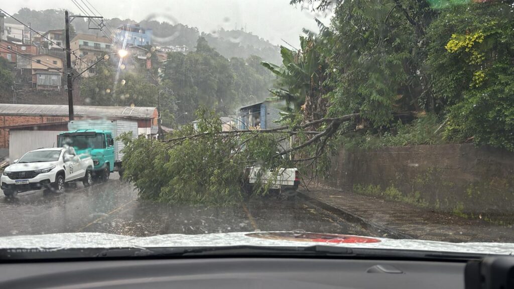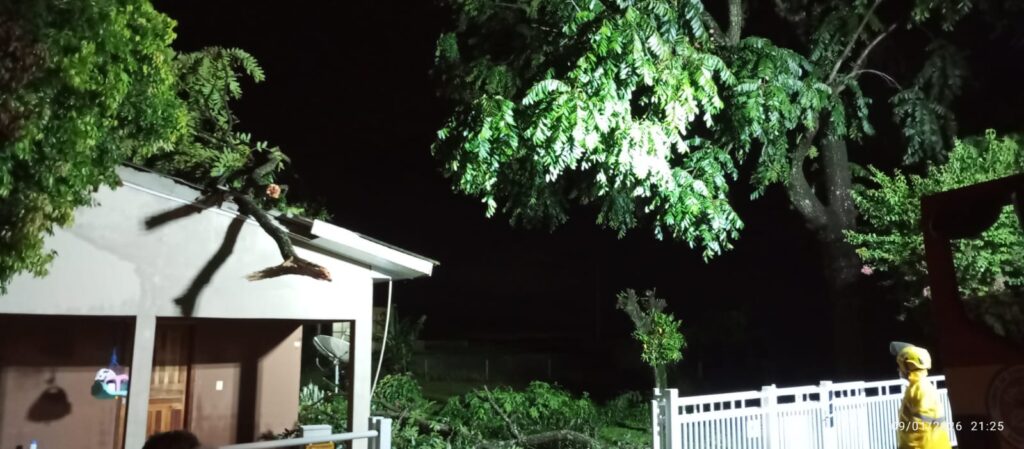 Ventos fortes e chuva intensa provocaram quedas de árvores e danos em residências