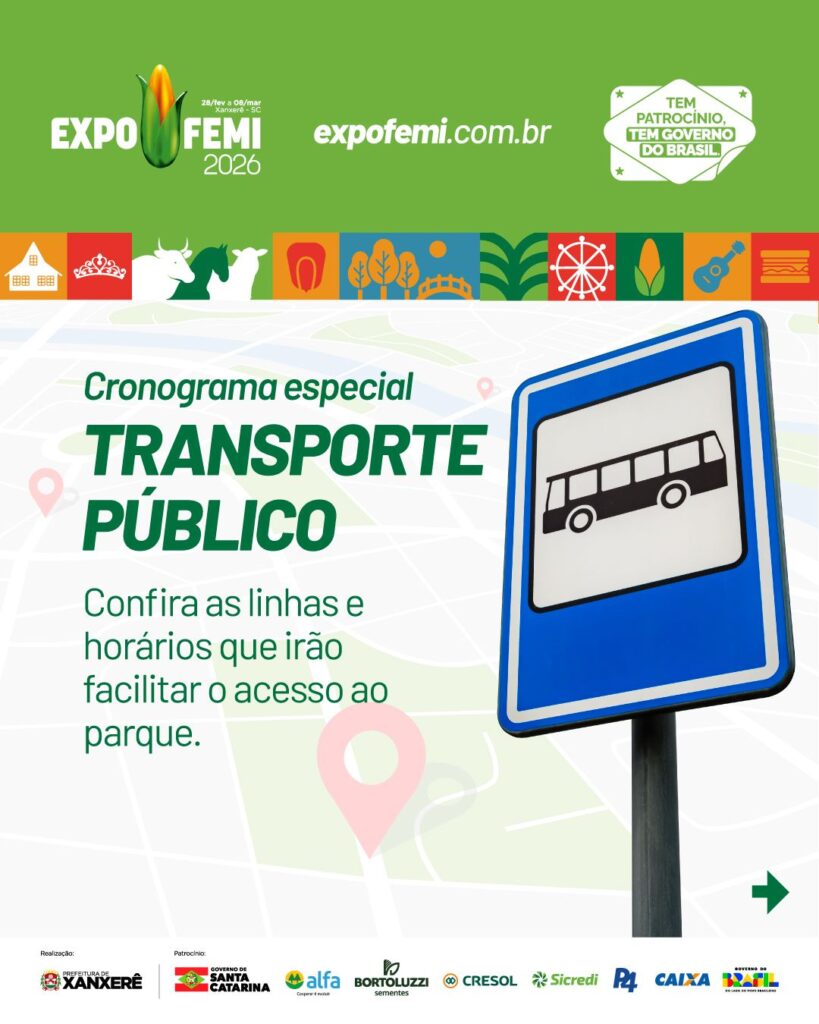 Faltando pouco para o início da ExpoFemi 2026, que ocorre entre 28 de fevereiro e 8 de março, no Parque de Exposições Rovilho Bortoluzzi, a Prefeitura de Xanxerê divulgou o cronograma especial de transporte público que será adotado durante o evento. A medida tem como objetivo facilitar o deslocamento da população, ampliar o acesso à feira e organizar o fluxo de passageiros nos dias de maior movimento.