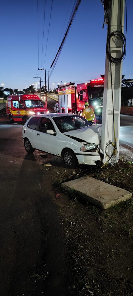 Três pessoas ficaram feridas na manhã de sábado (30), após um carro colidir com um poste, na Avenida Senador Atílio Fontana, no bairro Engenho Braun, em Chapecó, Oeste de Santa Catarina.