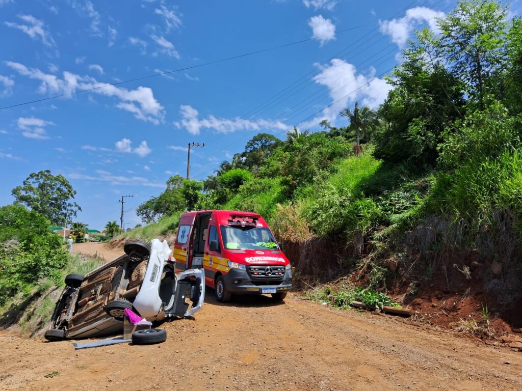 Um acidente de trânsito foi registrado na manhã desta quarta-feira (21) na SC-154, no bairro São Roque, em Itá. Um Ford Ka saiu da pista e capotou em um barranco por volta das 10h17, mobilizando equipes do Corpo de Bombeiros. Ao chegarem ao local, os bombeiros constataram a saída de pista seguida de capotamento. No veículo estavam duas mulheres, de 47 e 75 anos. A condutora já se encontrava fora do automóvel no momento do atendimento, apresentando ferimentos no braço e estado de choque emocional.