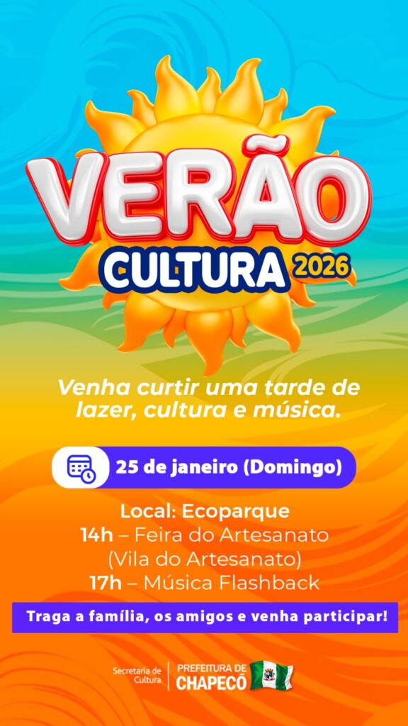 A Prefeitura de Chapecó, por meio da secretaria de Cultura realiza no domingo (25/01) o Verão Cultura 2026. A atividade ocorre das 15h às 17h com feira do artesanato e música no estilo flashback. Mais uma oportunidade de lazer, diversão e descontração para toda a família.